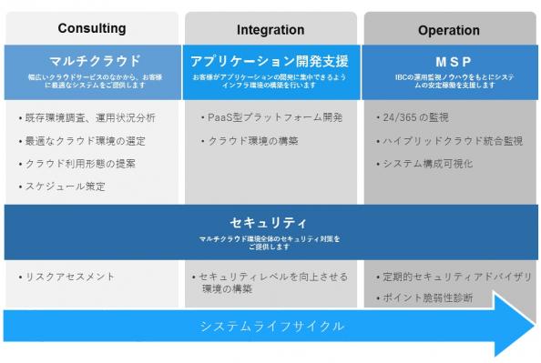 IBCは、2002年の設立以来、性能監視分野に特化した事業を展開し、マルチベンダーで構成されるITシステム全体の稼働状況や障害発生の予兆を把握するソリューションを提供しています。この見地をもとに、SCIでは特定のベンダーに依存せず、数多く存在するクラウド基盤、インテグレーター、アダプターの中からお客様環境に最適なマルチクラウド環境を選択のうえ提供いたします。また、導入前コンサルティングからクラウド環境構築、運用監視、セキュリティまでのITシステムのライフサイクルを一元的に提供することによって、お客様はクラウド環境の選定やサービス事業者の選択に掛かるコストやリソースを消費することなく、本来のビジネスに注力することができます。