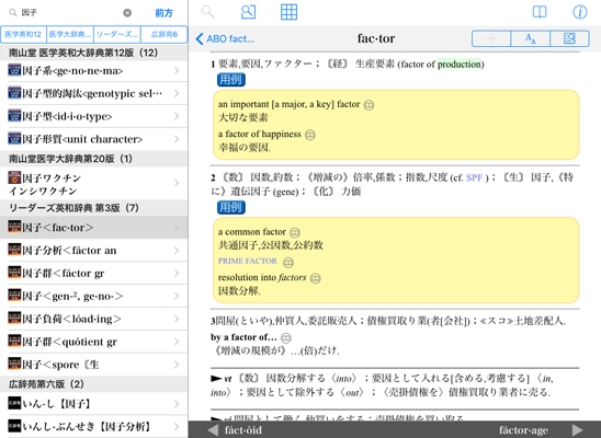 ●用例成句検索・条件検索など、辞典それぞれの利用を便利にする特殊な検索方法を搭載