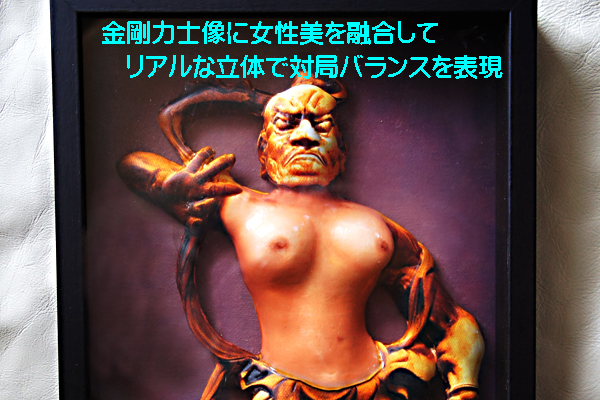 作品2=金剛力士像撮影+画像アート編集+女性撮影+合成+レリーフ調立体像制作手法と表現