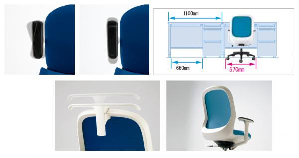 背タイプはハイバックで、肘なしとアジャスト肘の2種類。本体カラーはブラックとホワイトの2色、クロスメッシュのカラーは自然をイメージした柔らかな色合いの8色をラインアップしています。価格(税抜)は、肘なしタイプ55,800円、アジャスト肘タイプ78,600円です。
