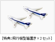 特典として、今年はANA B737型機をかたどった箸置き2点がセットになっており、毎年異なる機種をご用意する箸置きは、飛行機好きにはたまらないアイテムとしてお楽しみいただいております。