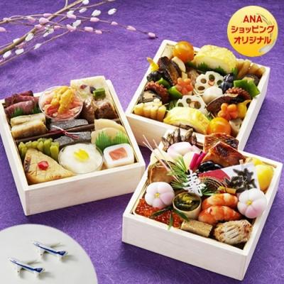ANA STORE/ANAショッピングA-styleでは毎年、新年の祝賀ムードを高めていただけるようなオリジナルおせちを販売しています。今年も、ファーストクラスをはじめ、ANAの機内食を手がける 株式会社ANAケータリングサービス(本社:東京都大田区、代表取締役社長:数田 充彦)が仕上げた「おせち三段重」をはじめ、合成添加物・合成着色料不使用の和洋おせちや、高級料亭が手がけた謹製おせちなど、多数取り揃えております。素材・品質・味わい全てにこだわったオリジナルおせちは、ANA STORE/ANAショッピングA-style限定で予約受付中です。