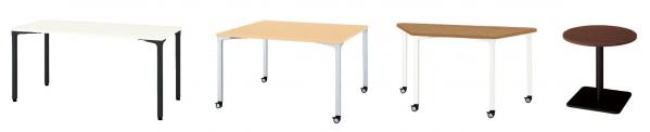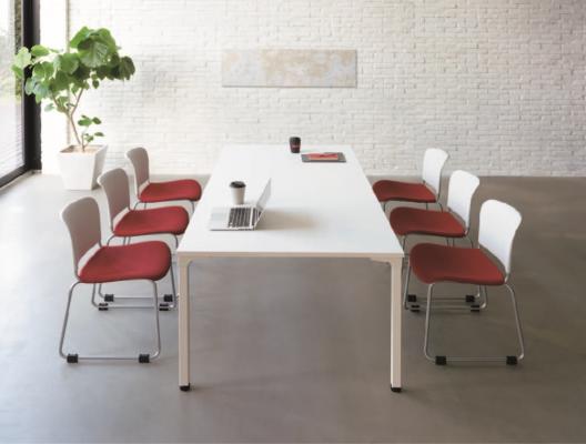多彩な天板形状でベーシックなかたちの会議、向き合って打ち合わせをするブレストミーティング・意見交換、セミナー型など用途に合わせた自由なレイアウトが可能です。また、キャスタータイプも用意しており、研修などのミーティングスタイルでも活発な意見交換の場を実現します。
