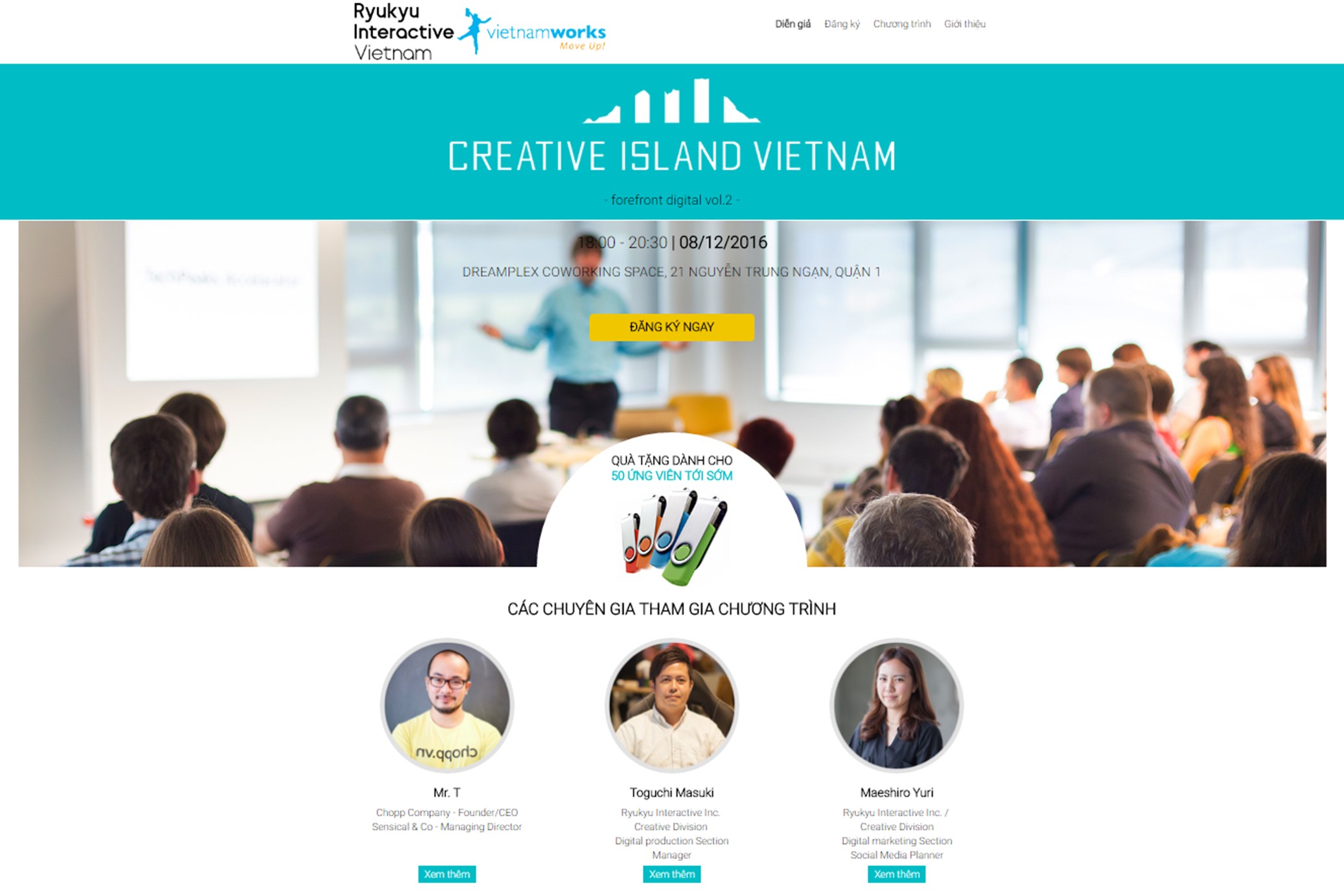 沖縄発のインターネットベンチャーである琉球インタラクティブ株式会社(本社:沖縄県宜野湾市、代表取締役社長:臼井 隆秀、以下「琉球インタラクティブ」)は、ベトナムのクリエイター向けイベントプロジェクト「CREATIVE ISLAND VIETNAM(クリエイティブアイランド・ベトナム)」の第2回目を、2016年12月8日(木)にベトナム・ホーチミン市で開催します。