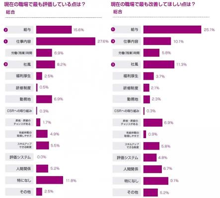 「社風」が職場で「評価する点」「改善して欲しい点」でトップ3入りするも「転職先の決め手」で圏外