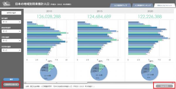 【「3PDG On Demand」有償ダウンロード版:日本の地域別将来推計人口での例】