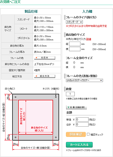 -プロスタイル 縦50x横50mm ~ 縦380x横380mm