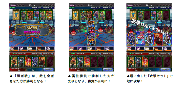 デュエルマッチは、3ターンで1戦が完結し、1vs1で遊べるリアルタイム対人バトルです。バトルには