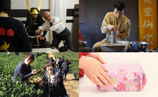・京都老舗:宮井(風呂敷包み方体験)、豊仙窯(清水焼き体験)、京都茶園(宇治茶体験)、他