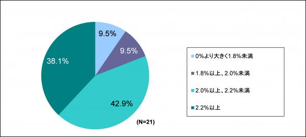 なお、回答数が21社と少数ですが、「特例子会社を持ち自社でも障がい者を雇用する」上場企業においては、上記と同じく2.2%以上の雇用を行っている割合は、38.1%と高くなっています(図2)。