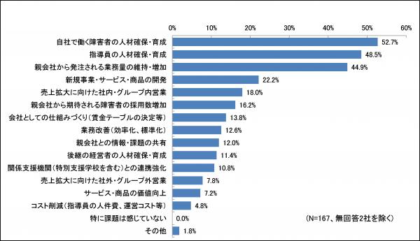 図3 障害者が担当している業務の運用に関する課題(特例子会社を持たず自社で障がい者を雇用する上場企業) (複数回答)