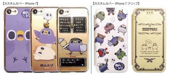 今回の新商品は、ご要望が大変多かったスマホケースとなっており、まずはクリアケースをベースとした、『カスタムカバー iPhone7』として、iPhoneの背面全体が「めんトリ」になってしまう「フェイス」、めんトリとひよこがイモウトに持ち上げられている「タワー」、思わず応援したくなる戦士スタイル「RPG」の全3種。そしてカードも収納できる便利な手帳型の『カスタムカバー iPhone7 フリップ』には、コスプレめんトリが可愛い「パターン」、まるで洋書のような「クラシック」の全2種での展開となります。