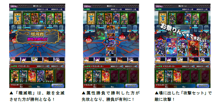 勝利条件:終了時のBPが多ければ勝利、もしくは相手のモンスターを全滅させれば勝利