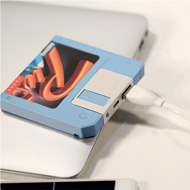 FLOPPY DISKは、レトロなフロッピーディスク型デザイン薄型モバイルバッテリーです。お父さん世代には懐かしく、若者には新鮮な形なので学校や職場のコミュニケーションも楽しくなるかも。薄さ11mmなのでカバンのポケットに収納して持ち運びに便利です。高品質リチウムポリマーを採用しているので安全な製品です。カラーはブラックとホワイトの2色。正規代理店の日本語パッケージだから安心してお求めいただけます。