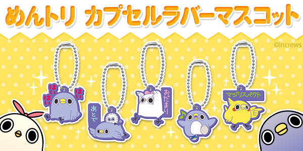 株式会社インクルーズ(東京都新宿区、代表取締役 山崎 健司)は、株式会社バンダイより「めんトリ カプセルラバーマスコット」(1回200円・税込、全5種)を、2016年12月中旬より全国のガシャポンにて発売致します。