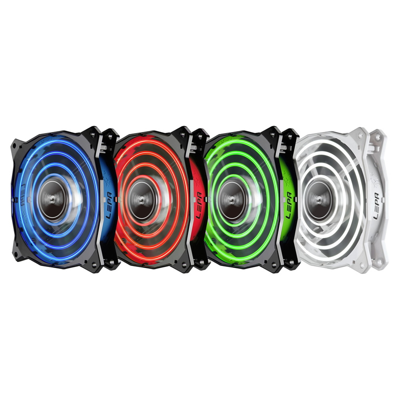 LPCPA12Pは、30種類のLEDエフェクトを搭載した120mm LEDファンです。4つのLEDと先進のLEDドライバーIC制御により、サークル状のイルミネーションを作り出します。PWM対応4ピンファンコネクタ仕様、約30%の風量を増加させる独自のHALOフレーム、特許を取得したBOLベアリングの採用により、優れた静音性と効果的なエアフローを実現します。ブルー、レッド、グリーン、ホワイトの4カラーラインアップ。