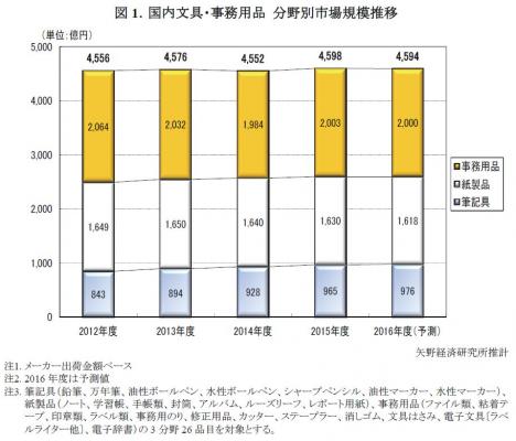 ◆2015年度の国内文具・事務用品市場は前年度比1.0%増の4,598億円
