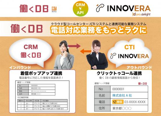 プロディライトが提供するクラウド型電話システム『INNOVERA PBX』と、ラクスの提供するクラウド型業務システム構築ツール『働くDB』の連携検証を終え、2017年1月4日より電話対応業務効率化、顧客満足度向上の為のソリューション提供をする為、協業を開始することで合意致しました。