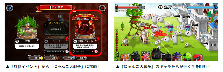 もらえるキャンペーンを開催!また、『にゃんこ大戦争』のキャラが登場する討伐イベントや、