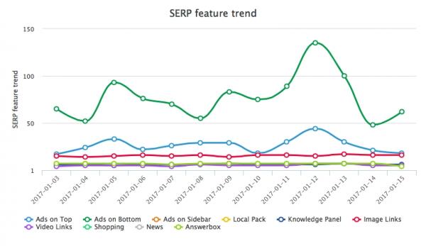 そこで、大規模サイト向けSEOツール『GinzaMetrics』は、検索結果(SERPs)上のユニバーサル検索枠のトレンドを可視化する「SERP Feature Trendチャート」をリリースいたしました。