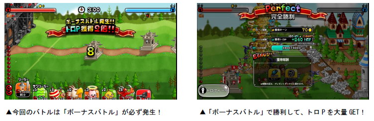 発生します。ボーナスバトルではバトルの勝敗に関係なく、獲得トロPが2・3・5・10倍のうち