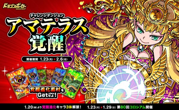1月23日(月)より、チャレンジダンジョン「アマテラス覚醒」を復刻開催いたします。本ダンジョンでは、
