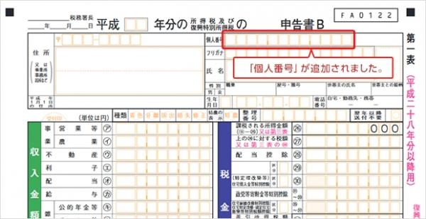 新バーション17.1.0では、マイナンバー制度に伴い、所得税申告書のうち申告書Bの様式が変更され、申告書を提出する本人及びその扶養親族や事業専従者の個人番号記入欄が追加されました。