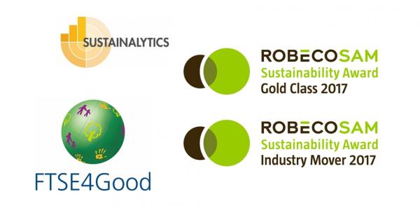 RobecoSAM社により「ゴールドクラス」と「Industry Mover」の評価