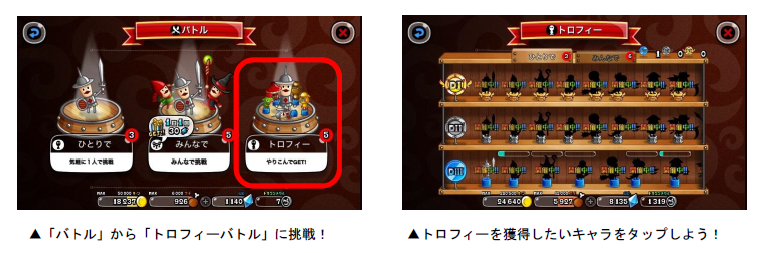 「トロフィーバトル」は、各キャラのトロフィー獲得を目指して、全国のプレイヤーと