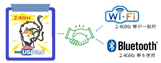 USB3.0/3.1はその仕様から2.4GHz帯のノイズを出します。この結果、同じ2.4GHz帯の電波にて通信を行うWiFi/Bluetoothが電波障害を起こし不安定になる問題がありました。