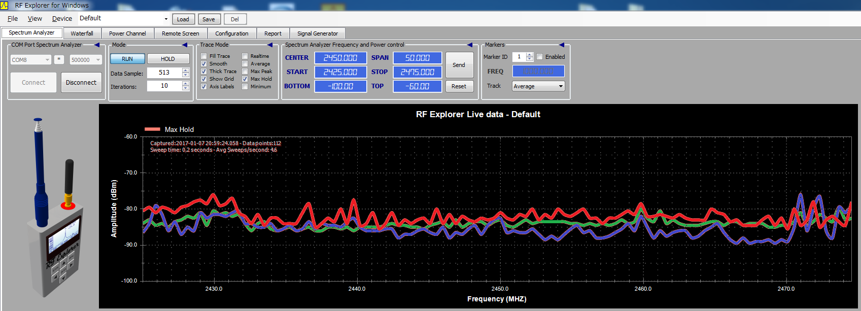 §スペクトルアナライザによる瞬間的な電波の最大値をグラフ化