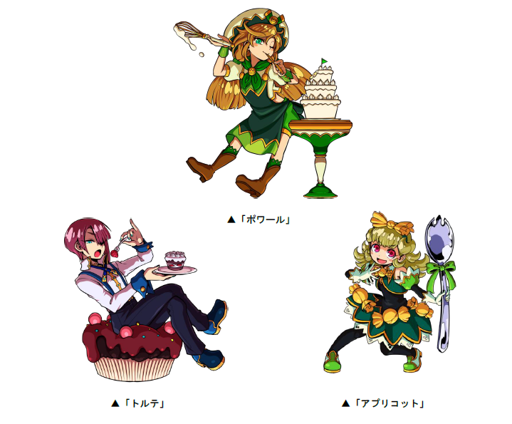 「マカロン」が出現し、2戦目には「ポワール」「トルテ」「アプリコット」が出現します。
