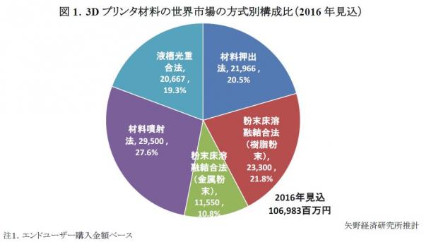 ◆2016年の3Dプリンタ材料の世界市場規模は約1,070億円、前年比116.1%と大きく伸長見込