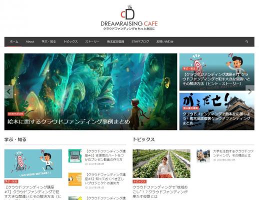 クラウドファンディングプラットフォームを提供する株式会社ドリームレイジング(東京都千代田区、代表取締役:本田恵一)では、ドリームレイジングのオウンドメディアとして、『ドリームレイジング Cafe』を2017年1月30日オープンしました。このサイトは、初めてクラウドファンディングを利用される方、過去にクラウドファンディングを利用したけれど失敗した方などがクラウドファンディングを有効に活用できるように、様々なノウハウ・お役立ち情報を出来るだけ分かり易くご紹介する交流の場です。その他にも、クラウドファンディングに関する話題や私たちの日々の活動についてもご紹介して参ります。