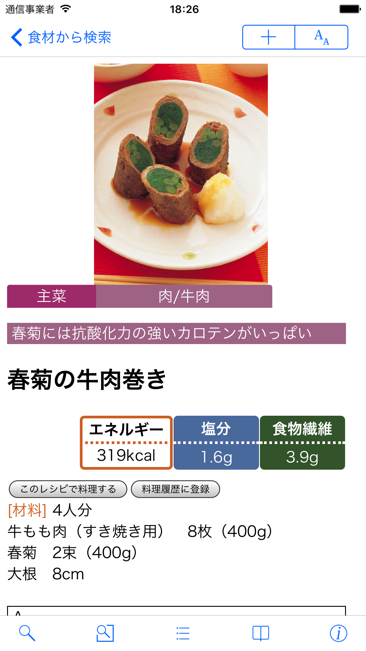 ●レシピ名、食材別インデックスからレシピを検索できます。
