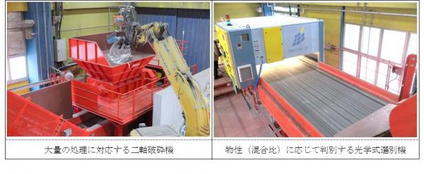 今回の刷新の目玉のひとつである高性能破砕機は、インバータ型の二軸破砕機で従来より処理能力が3倍に拡大。硬質物から軟質物まで広範囲な素材の廃棄物が処理可能になり、また破砕粒度の縮小化で選別処理や最終処理の効率化が見込まれます。