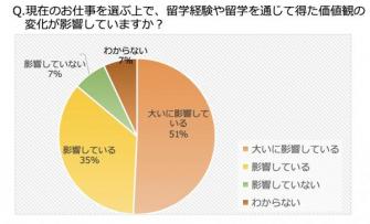 ・86%以上が、留学時代の経験を通した価値観の変化が今の仕事に影響していると回答