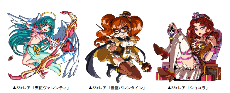 GODまで進化する新SS+レア「天使ヴァレンティ」やSS+レア「怪盗バレンタイン」が出現することがあり、