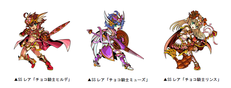 「自分級」以上のボスモンスターとして、SSレア「チョコ騎士ヒルデ」「チョコ騎士ミューズ」