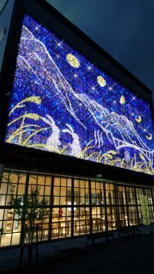現在、宇奈月温泉では3月31日まで「宇奈月温泉100名月物語」が開催中。そのメイン演出として、湯めどころ宇奈月の壁面に巨大な壁画型イルミネーションを設置。30分に1度、宇奈月温泉のシンボリックな風景を題材とした、「光と音の物語」が始まります。鑑賞しているうちに、まるで自身が絵本の世界に入り込んだような気分に。内容は子どもから大人まで伝わり易く、「日本百名月」にも認定された宇奈月温泉の美しい月、自然、文学等を伝える叙情的で牧歌的な物語をベースに展開。どこかノスタルジックな劇場型イルミネーションに癒しを感じながらも、深い記憶に刻まれる光の演出となっています。