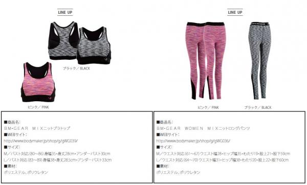 大阪府吹田市を拠点に、日本発祥のスポーツブランド「BODYMAKER(ボディメーカー)の製造から販売まで行っている株式会社BB-SPORTS(本社:大阪府吹田市、代表取締役社長:長渕巧)は、複数色の霜降り糸メランジで編まれたニット仕様の女性用スポーツウェア「BM・GEAR MIXニットブラトップ」「BM・GEAR WOMEN MIXニットロングパンツ」を2月初旬より全国のボディメーカー直営店及びオンラインストア(http://www.bodymaker.jp/shop/)で販売を開始しました。伸縮性・吸汗速乾性・デザイン性を兼ね備える機能性インナーとして幅広いスポーツシーンで着用頂けます。スポーティーなスタイルにアクセントつけできる商品です。