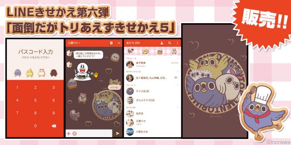 株式会社インクルーズ(東京都新宿区、代表取締役 山崎 健司)は、LINEスタンプ「面倒だがトリあえず返信」シリーズの大人気キャラクター「めんトリ」のLINE着せかえ第6弾「めんトリ☆クッキー」を本日2月13日より配信開始しました事をご報告させていただきます。