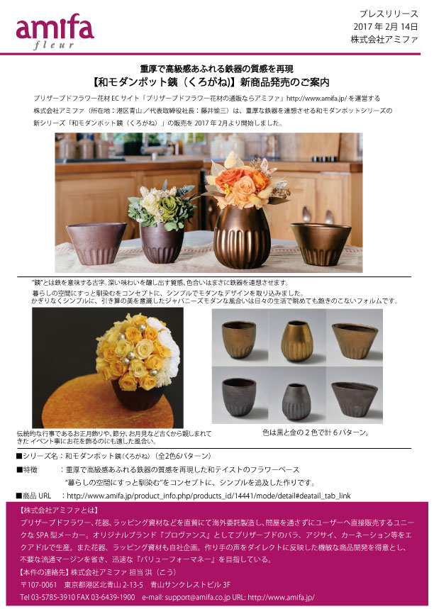 プリザーブドフラワー、花器、ラッピング資材などを直貿にて海外委託製造し、問屋を通さずにユーザーへ直接販売するユニークなSPA型メーカー。オリジナルブランド『プロヴァンス』としてプリザーブドのバラ、アジサイ、カーネーション等をエクアドルで生産。また花器、ラッピング資材も自社企画。作り手の声をダイレクトに反映した機敏な商品開発を得意とし、不要な流通マージンを省き、迅速な『バリューフォーマネー』を目指している。