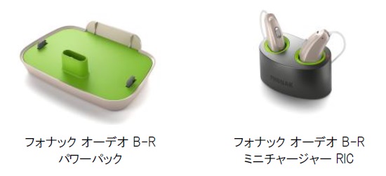 オーデオB-Rには充電と乾燥が一度に出来る「チャージャーケースRIC」、ユーザーの方の安心のためにチャージャーケースにワンタッチで装着出来、持ち歩き可能な「パワーパック」と、職場などでの充電に使用できる「ミニチャージャーRIC」の2種類の充電オプションがあります。