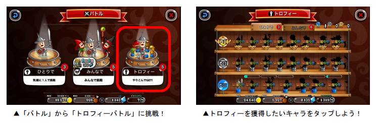 「トロフィーバトル」は、各キャラのトロフィー獲得を目指して、全国のプレイヤーと