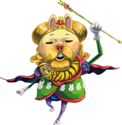 推定年齢68才、あにまる族 犬系の出身で国民思い。散歩が大好きでいつもおとぎの国を散歩している。国民には「スーダラ国王」とよばれ、とても慕われているが、少しおっちょこちょいのところがある。子供は11人。旅が大好きで、面白いもの、不思議なものを探して世界中旅をして買い付けて、国民に配るのが趣味。作りすぎたもの、あまったものは「おとぎの国」でセールとして格安で売っている。