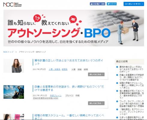 人事総務や経理、IT、業務支援などの間接部門へのアウトソーシングおよび人材サービスなど幅広くサービス提供しているNOC様では、2014年7月から、オウンドメディア「誰も知らない!?教えてくれない アウトソーシング・BPO」を運営。「賞与計算の正しい方法」や「ビジネス文書電子化の基礎知識」など、アウトソーシングやBPO(ビジネスプロセスアウトソーシング)のノウハウを発信しています。