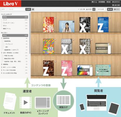 本棚システムの新バージョン「LOGOSWARE Libra V」は、各種のデジタルコンテンツを本棚形式に並べて閲覧できるウェブシステムです。