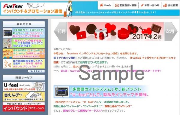 株式会社フュートレック(本社所在地:大阪市淀川区 代表取締役社長:藤木英幸 以下、フュートレック)は、インバウンドビジネスをサポートする製品情報や効果的なプロモーションのご提案などをお届けするメールマガジン「FueTrek・インバウンド&プロモーション通信」を、2月21日(火)より配信開始いたしました。