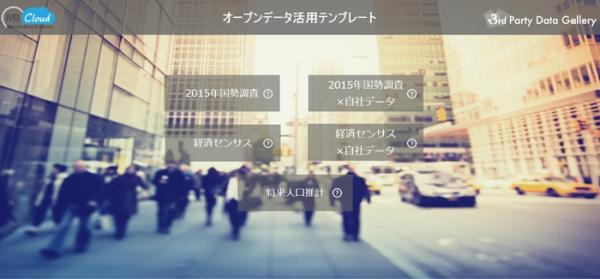 提供するデータは「3rd Party Data Gallery」においても利用者が多い「平成27年国勢調査」「平成25年日本の地域別将来推計人口」に新たに「平成26年経済センサス」を加えた3データで、これらを利用することで全国市区町村レベルでの産業構造や現在及び将来にわたる人口動態を把握できます。